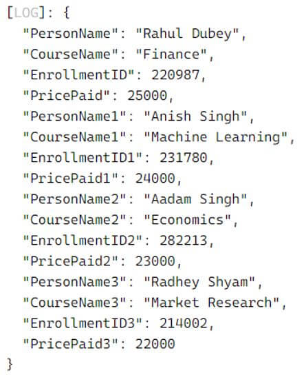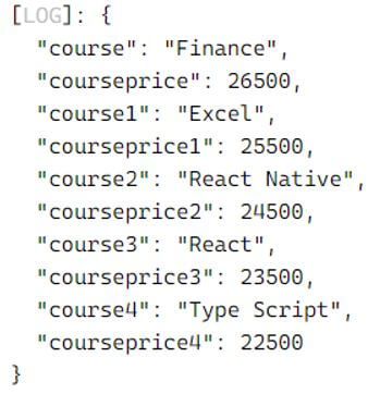 - Lastly, the showType function is called with an object containing information about four courses. Each course is represented as an object with properties course, courseprice.