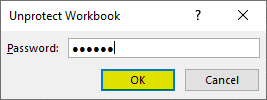 - While unprotecting a workbook, a password is not mandatory. We can clear the password and then access the workbook.