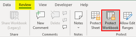 - Unprotecting a workbook can be done in another way. If users want to share, delete, or hide a sheet from the workbook, we can just go to Review > Protect Workbook and enter a password to unprotect the workbook structure.