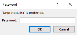- While opening, it will ask for the password. If we have the password, we can enter and view the data. But what if we want to share the file with someone who is part of our team and doesn’t need a password, as it kills time, then we can unprotect the workbook.