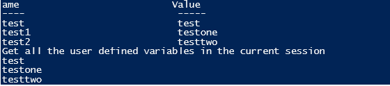 - Get-Variable: Gets the list of variables that are present in the current session.