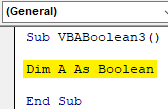 Step 2: Now define a Dim A variable as Boolean as shown below.