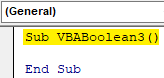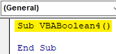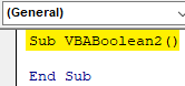 Step 2: Now in the opened module, write the sub category of VBA Boolean. We can choose to write any name of subprocedure here.