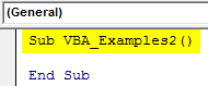 Step 1: Open a Module and write the subprocedure as shown below. We can use any name to define this.