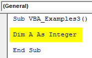 Sub VBA_Examples3() Dim A As Integer End Sub