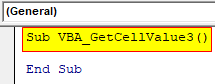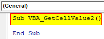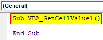 Step 2: Write the subprocedure of VBA Get Cell Value.