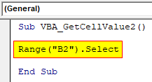Sub VBA_GetCellValue2() Range("B2").Select End Sub