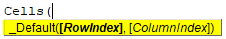 If we see the syntax, the CELLS function only requires the Row index and Column index coordinates where we just need to put the position of cells.