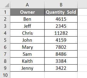 Let’s create a chart first in excel. For that, we need data. Below we have some sales data of 8 salespersons.