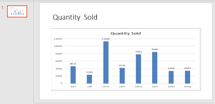 Step 14: Now select the shape of the Chart which is at first position as text range. And carry the same title which is “Quantity Sold” into the PowerPoint Presentation.