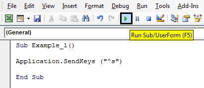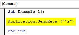 Sub Example_1() Application.SendKeys ("^s") End Sub