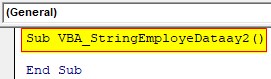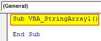 Step 2: Define the subprocedure preferably in the name of VBA String Array or we can choose any name as per our choice.