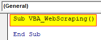 Step 2: And write the sub procedure for VBA Web Scraping as shown below.