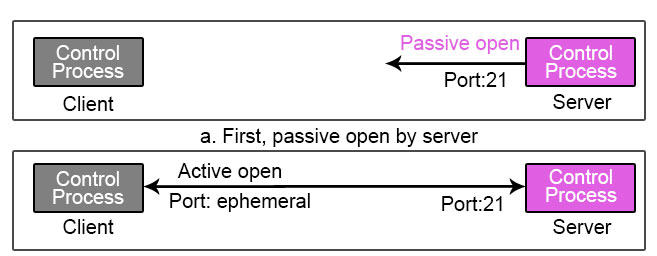 - Using ephemeral port client issues a passive open. This step must be done by the client, not the server because the client wants to transform the file.