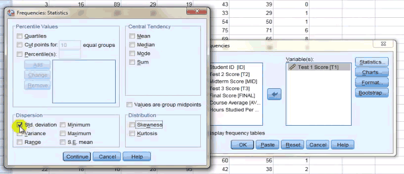 - You will find the Check box of Mean, Median, and Mode in the central tendency Dialog Box; check them.