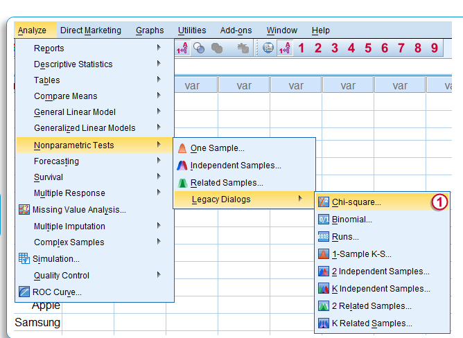- Click Analyze…. Select Non-Parametric Tests… Select Legacy Dialogs.