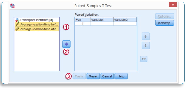 - In the One-Sample T-Test Dialog Box, Drop the Two Variables that you want to run the test in the “Paired Variable List” using the Drop Button in the center one by one.
