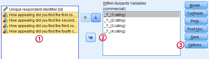 - Drop all the Variables you wanted to include below the Factor Name ( Courses) to Within – Subject Variables