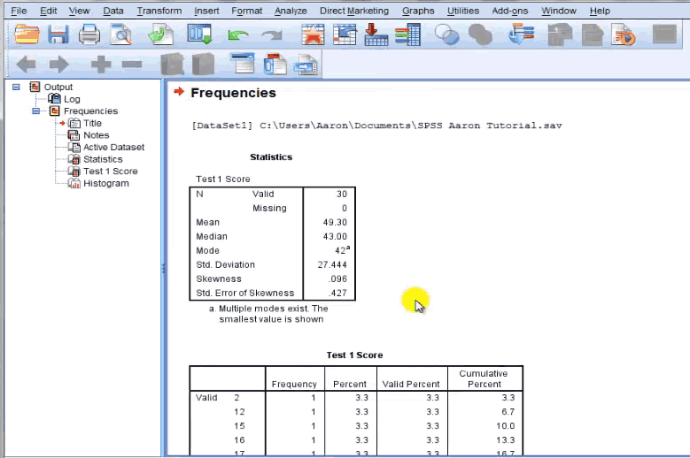 - The output will be opened in a separate window, with a List of Mean, Median, and Mode and a pictorial representation of the chart you selected earlier.