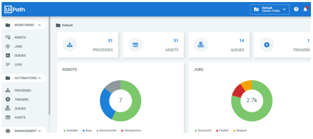 UiPath Orchestrator is a Centralized repository that handles the Robots, Jobs, processes, Queues, Assets, Logs, multiple tenants, packages, machines, and License information.