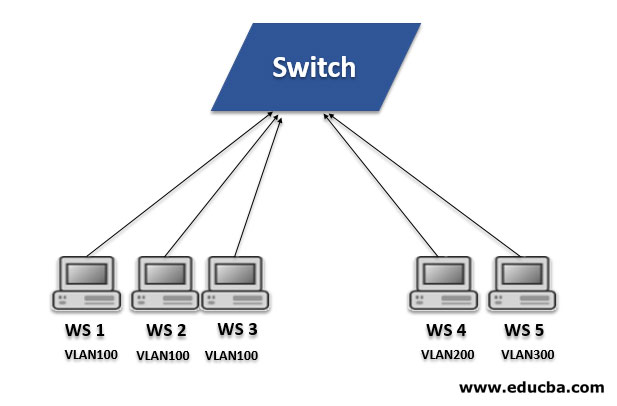 - In the above example, 5 workstations are connected to the Layer 2 switch which supports it. Workstation 1, workstation 2 and workstation 3 are connected 100 while Workstation 4 & 5 are connected VLAN 200. Here WS1, WS2 & WS3 are connected to the same Virtual LAN, hence they included in the same broadcast domain. Here, the switch is able to send a packet between workstations WS1, WS2 & WS3.