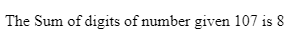 echo "The Sum of digits of number given 107 is $sum";