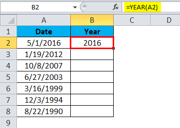 YEAR function in Excel can fetch you the year value from the supplied date. YEAR is one of the Date & Time function in Excel. This is useful when extracting the year from the dates or supplying a year value to another formula.